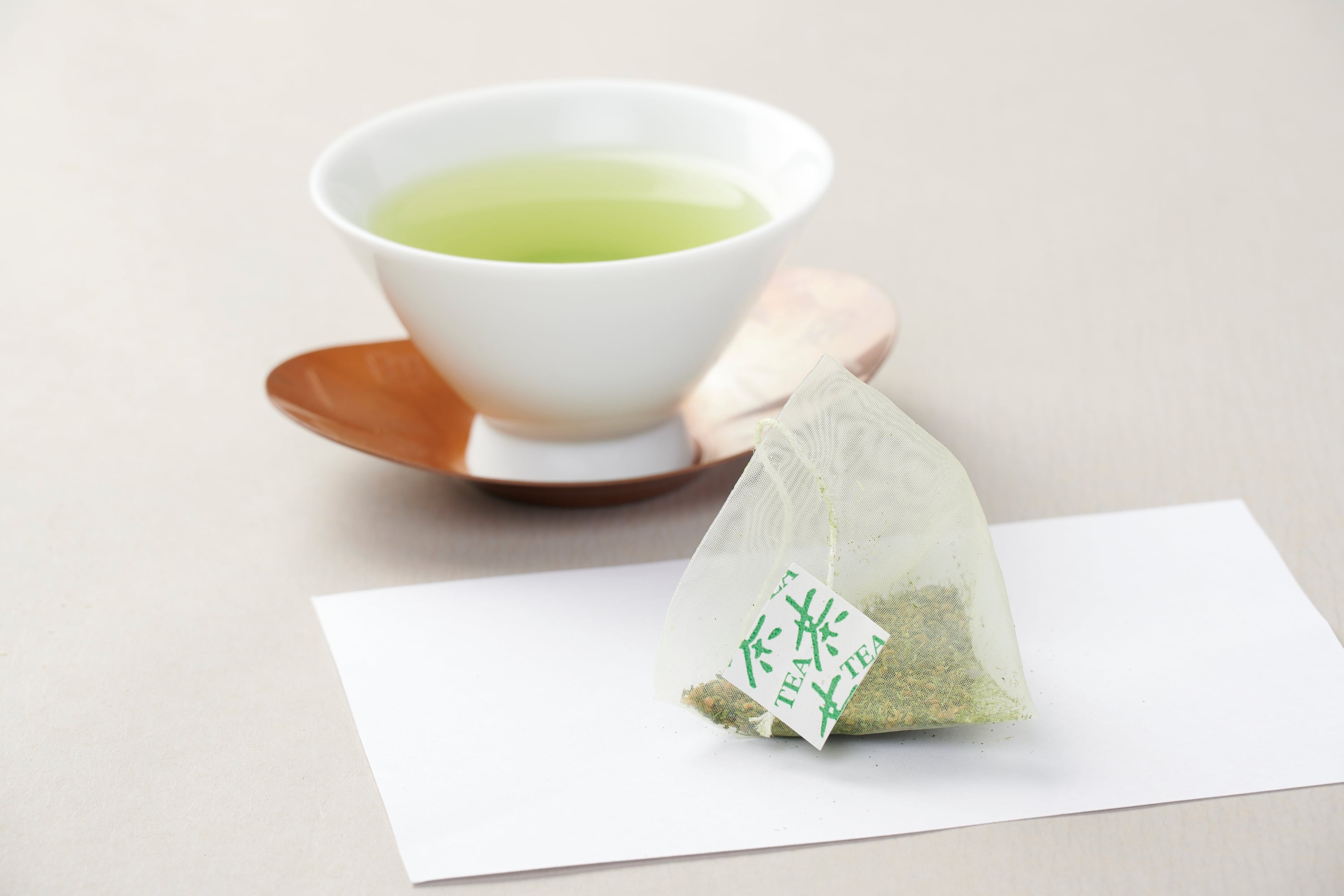 抹茶入り煎茶ひも付きティーバッグは、抹茶と煎茶の風味を楽しめる贅沢な一品です。